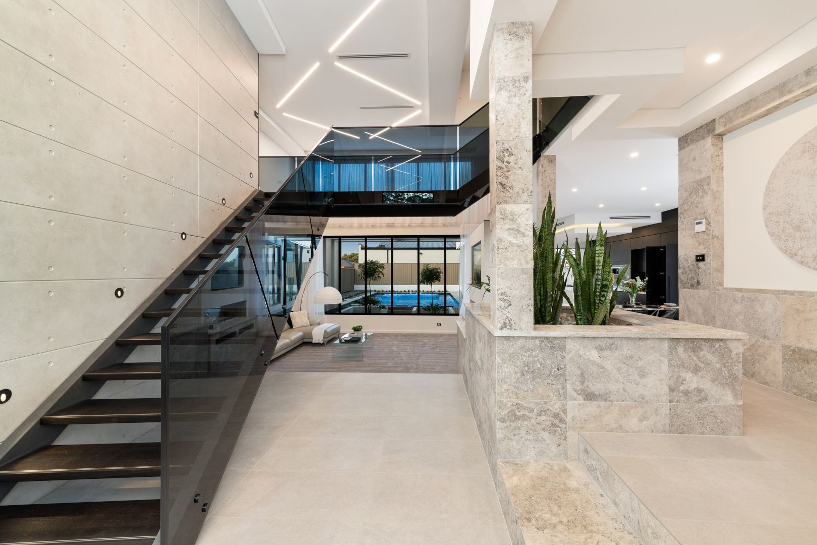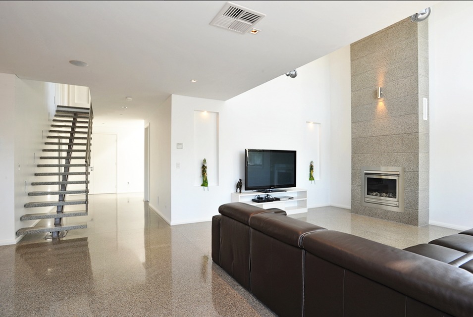 The cantilevered stair gives a contemporary house a floating seamless feel. It is aesthetically appealing because it gives the appearance that minimal materials are used.